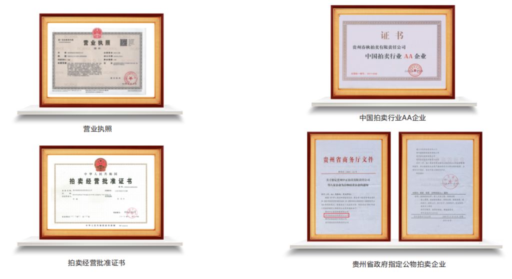貴州春秋拍賣有限責(zé)任公司,于2005年1月經(jīng)貴州省商務(wù)廳、貴陽(yáng)市工商行政管理局批準(zhǔn)正式成立,注冊(cè)資本200萬(wàn)元。公司是首批獲得拍賣經(jīng)營(yíng)批準(zhǔn)證書(shū)的中國(guó)拍賣行業(yè)AA企業(yè)、中國(guó)拍賣行業(yè)協(xié)會(huì)理事單位、貴州省人民政府指定公物拍賣企業(yè)、貴州省拍賣行業(yè)協(xié)會(huì)副會(huì)長(zhǎng)單位、貴州省省級(jí)守合同重信用單位。公司自成立起就制定了具有前瞻性的發(fā)展戰(zhàn)略,制定了穩(wěn)固貴州省頂級(jí)拍賣企業(yè)的計(jì)劃和思路,立志成為全國(guó)拍賣龍頭企業(yè)和標(biāo)桿企業(yè)。