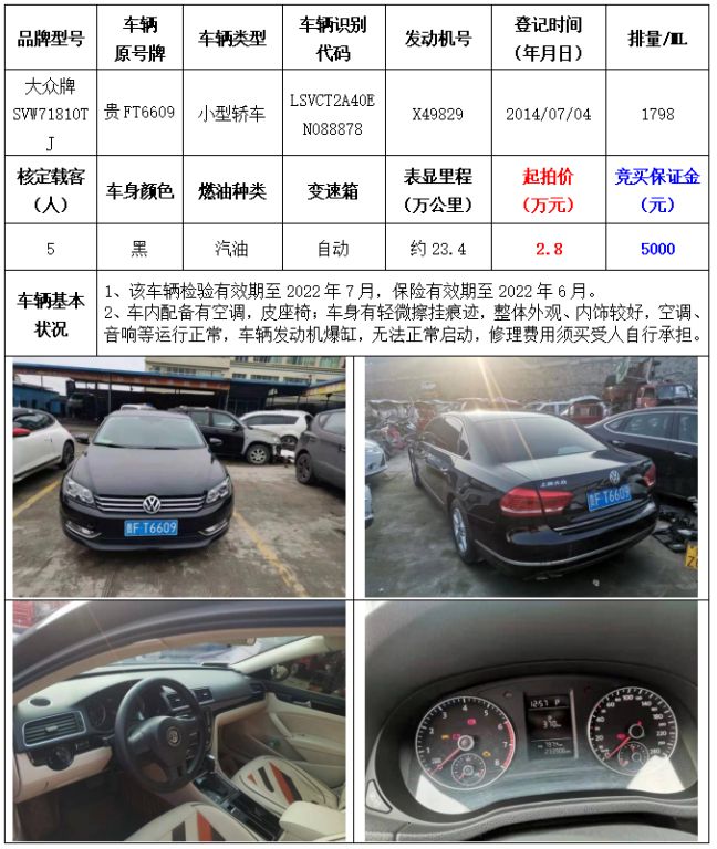 拍品編號(hào)1:大眾牌SVW71810TJ小型轎車一輛