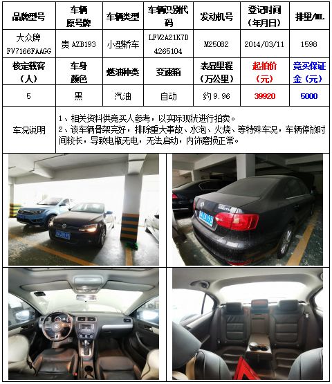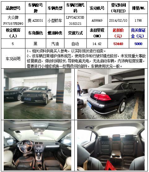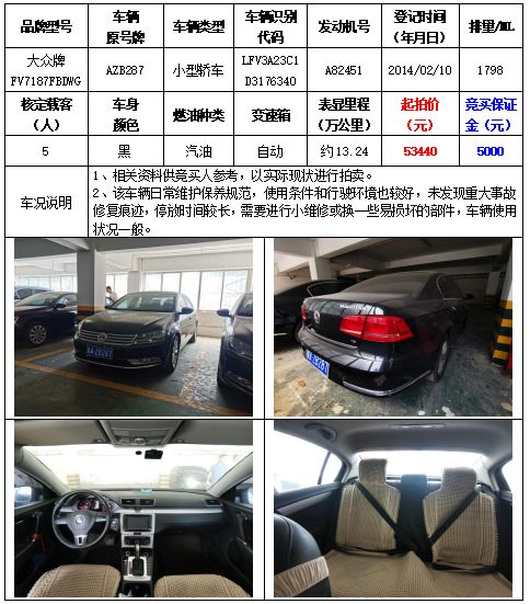 拍品編號1:大眾牌FV7166FAAGG小型轎車一輛