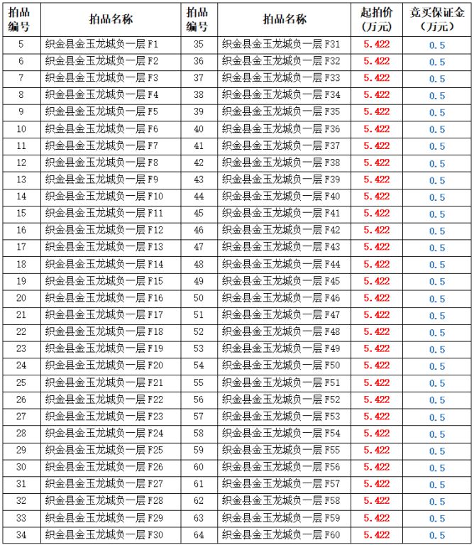 拍品編號5-276號:畢節(jié)市織金縣金玉龍城負一層停車位