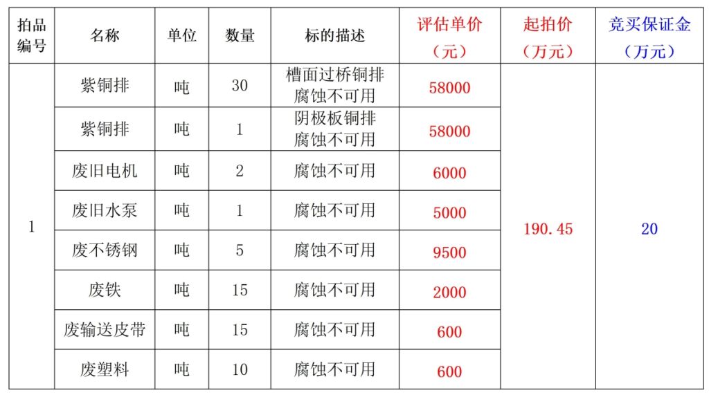 紫銅排、廢舊電機、廢舊水泵、廢不銹鋼、廢鐵、廢運輸皮帶、廢塑料等一批廢舊物資。