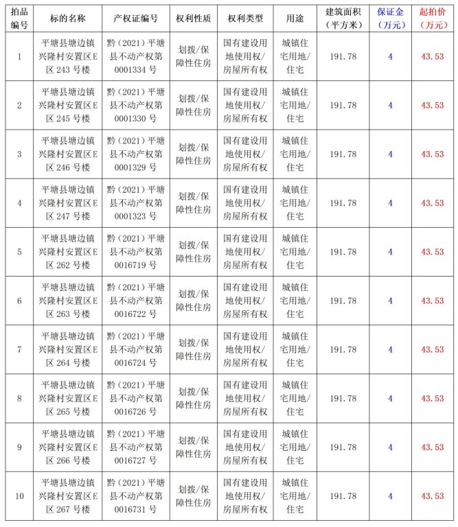 拍品1-10:平塘縣塘邊鎮(zhèn)興隆村安置區(qū)10套住房