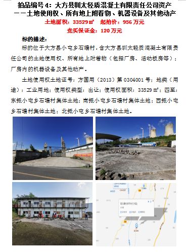 4、大方縣圳太輕質(zhì)混凝土有限公司資產(chǎn)(土地面積為33529);