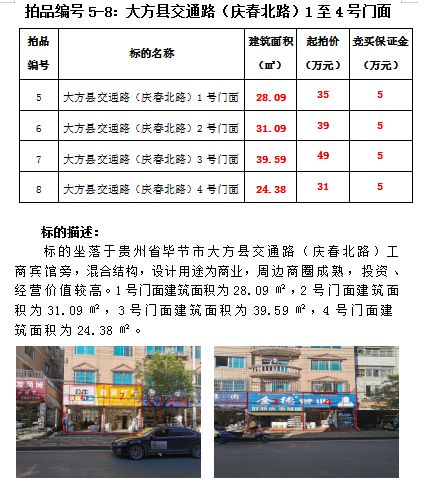 5、大方縣交通路(慶北春路)4間門(mén)面(建筑面積分別為:28.0931.09、39.5924.38;