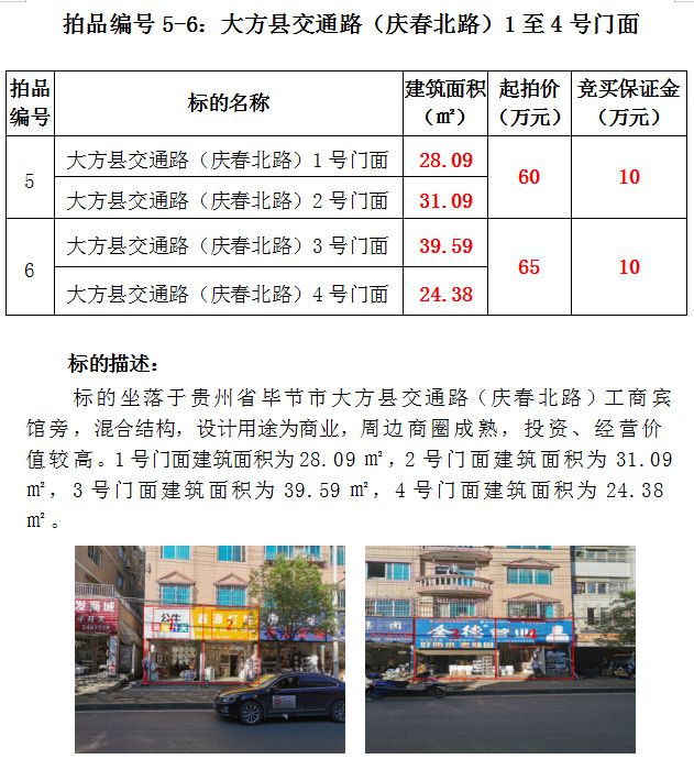 5、大方縣交通路(慶北春路)4間門面(建筑面積分別為:28.09、31.09、39.5924.38;