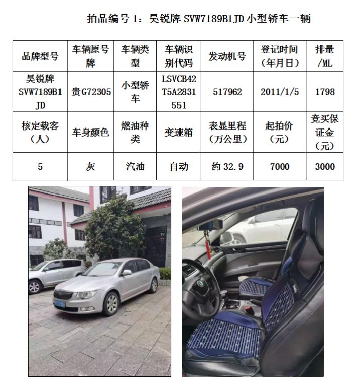 受委托,我公司定于2020年12月4日(星期五)下午14:30在安順市西秀區(qū)黃果樹大街345號黔中大廈安順農(nóng)行三樓會(huì)議室公開拍賣:昊銳牌、帕薩特牌(兩輛)、別克牌共計(jì)4輛車。