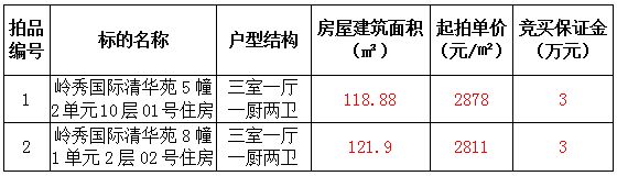 1、關嶺縣嶺秀國際2套住宅房產(chǎn),建筑面積:118.88—121.9㎡,起拍價:2811—2878元/㎡;