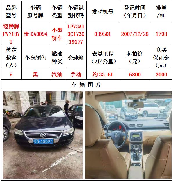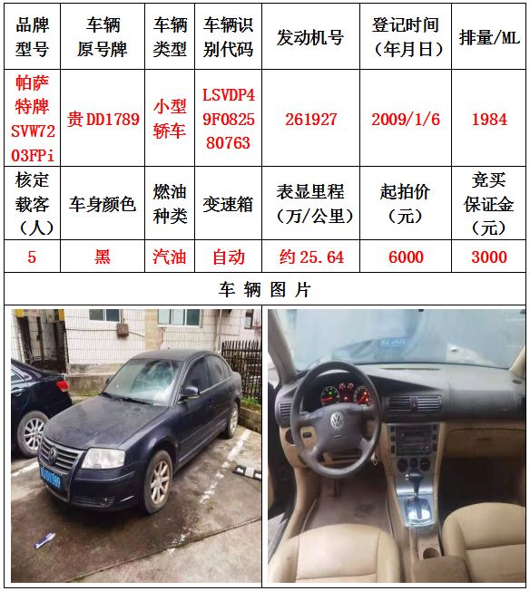 本次拍賣會的拍賣標的其中5輛車,分別為邁騰牌FV7187T小型轎車一輛、豐田牌GTM7200GB-NAV1小型轎車一輛、捷達牌FV7160GiF E3小型轎車一輛、帕薩特牌SVW7203FPi小型轎車一輛、帕薩特牌SVW7203FPi小型轎車一輛,為打包整體拍賣,不作拆分,整體起拍價:42400元,且只對標的現(xiàn)狀進行拍賣,不作任何質量擔保。