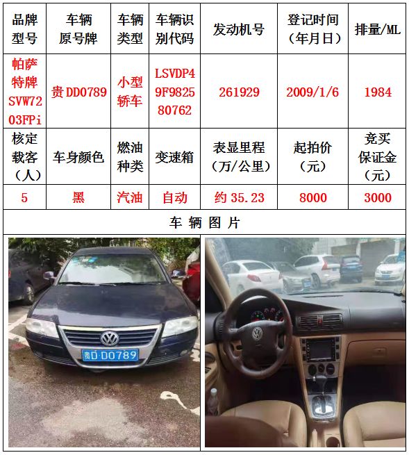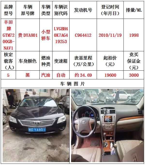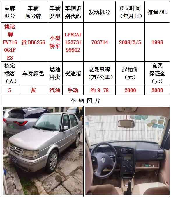 1、機動車輛5輛(整體拍賣),起拍價:42400元,競買保證金15000元。