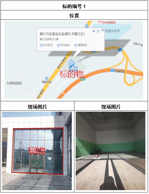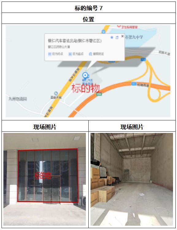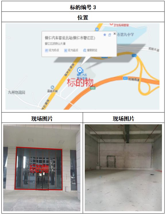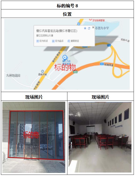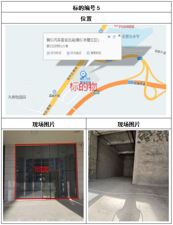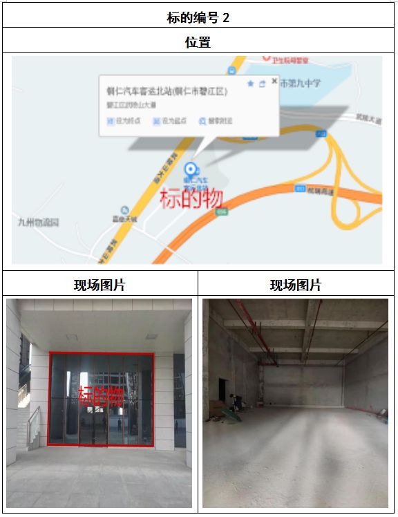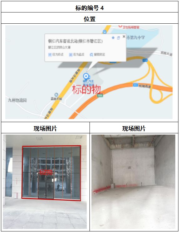 拍品8號和9號標(biāo)的位于銅仁碧江區(qū)川硐汽車客運(yùn)北站A區(qū)進(jìn)站口負(fù)一層8-9號的商業(yè)房地產(chǎn),位于銅仁市中心以北,銅仁汽車北站安置旁,建筑面積分別為:121.5㎡、121.5㎡,租賃期5年,該標(biāo)的位置交通便利,人流量大。