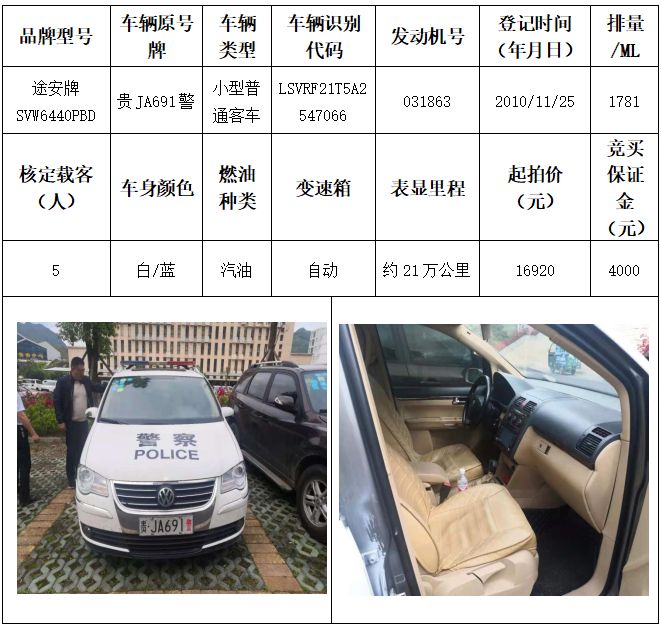 拍品編號3:途安牌SVW6440PBD小型普通客車一輛