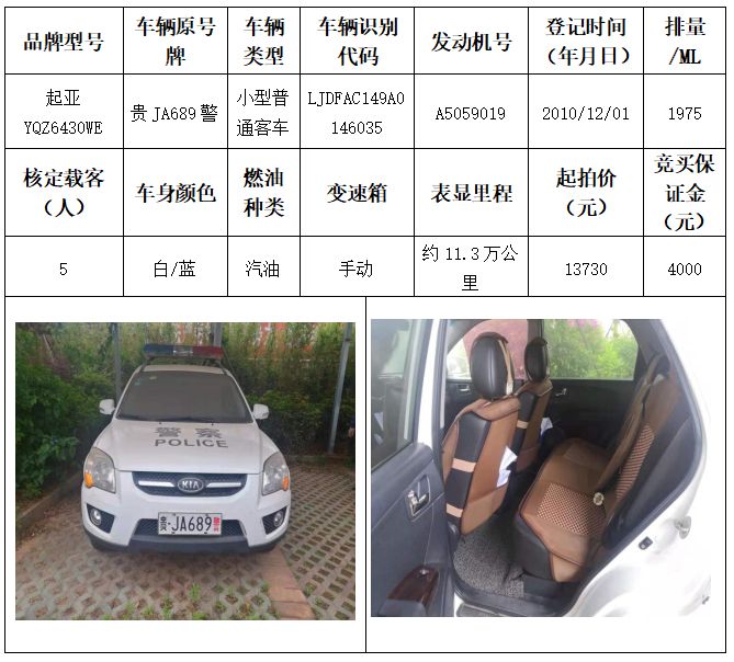 拍品編號2:起亞YQZ6430WE小型普通客車一輛