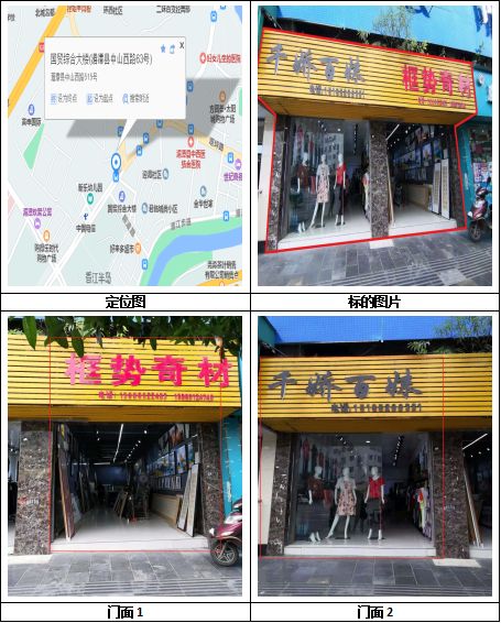 標(biāo)的位于遵義市湄潭縣湄江鎮(zhèn)四十米大道農(nóng)資綜合市場(chǎng)。建筑面積:110㎡,混合結(jié)構(gòu),房屋所有權(quán)證:遵房權(quán)證湄潭縣字第00007841號(hào),混合結(jié)構(gòu);國(guó)有土地使用證:湄國(guó)用(2003)字第01-257號(hào),用途為:商業(yè)用地,使用權(quán)類型為:出讓用地。