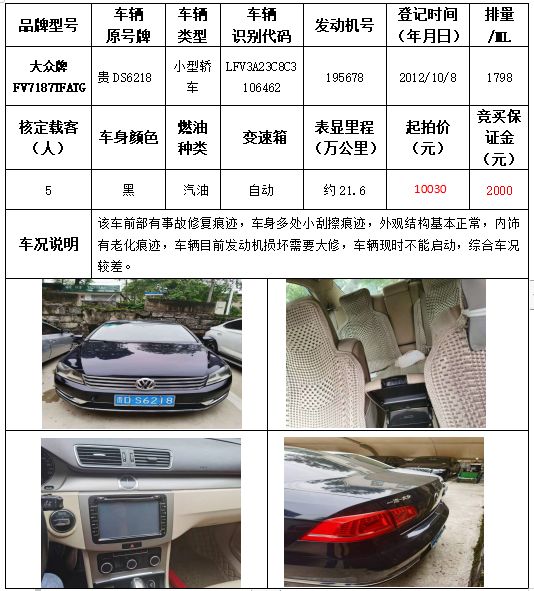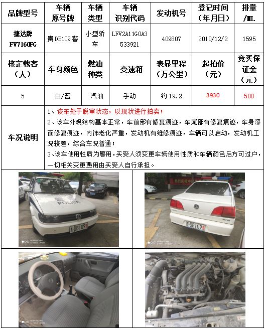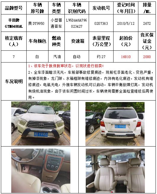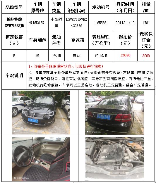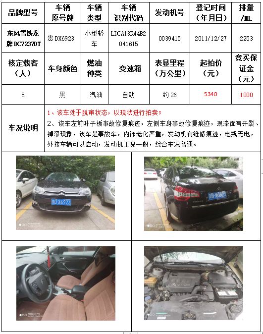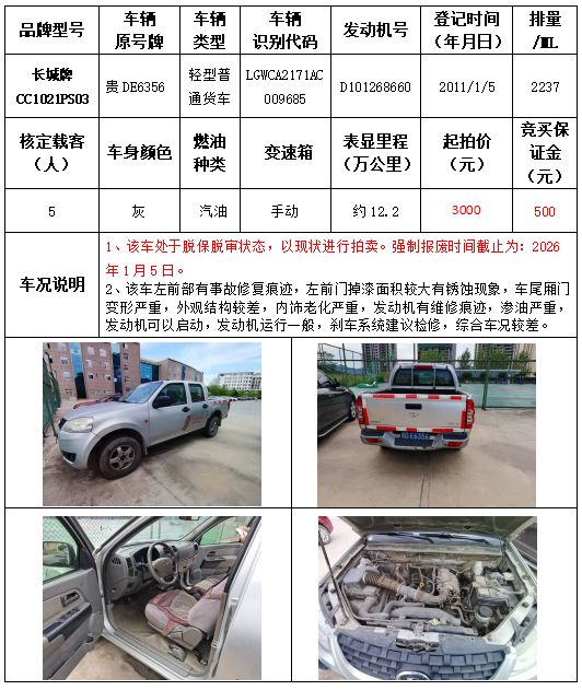 受委托,本公司定于2021年9月16日(星期四)下午14:30時(shí),在銅仁市碧江區(qū)川硐教育園區(qū)誠信路銅仁市公共資源交易中心開標(biāo)六室(拍賣大廳)公開拍賣以下車輛: