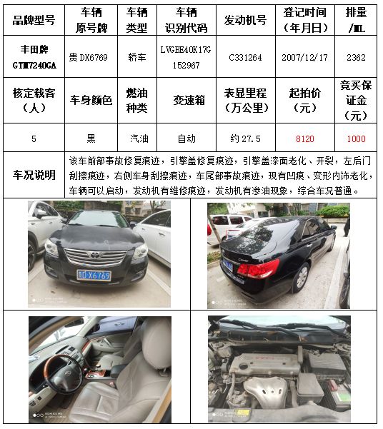 拍品編號(hào)6:豐田牌GTM7240GA轎車一輛