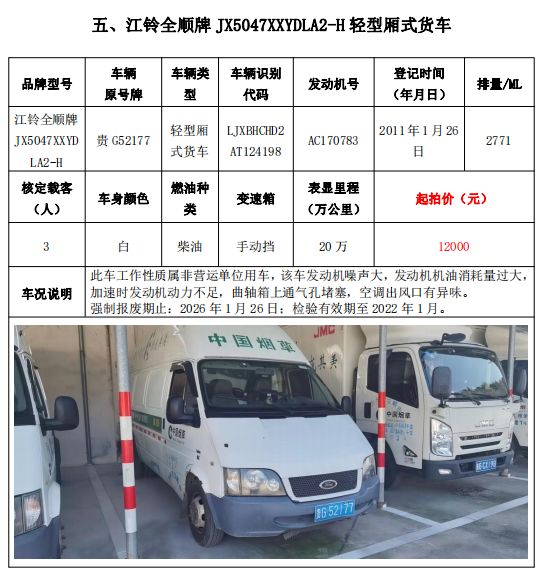 貴州省煙草公司安順市公司車輛拍賣公告