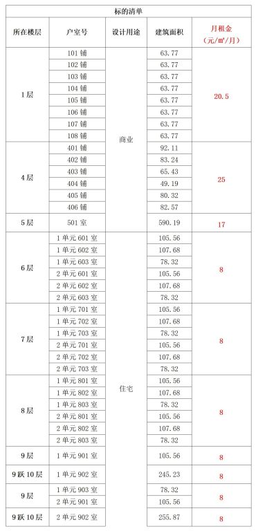 2.該標(biāo)的1、4、5層設(shè)計用途為商業(yè),6-9層設(shè)計用途為住宅。