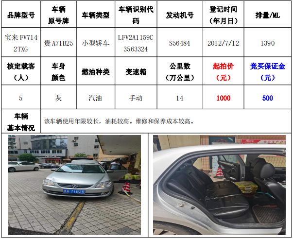 受委托,我公司定于2022年8月16日(星期二)下午14:30在貴州省貴陽市中華南路20號(hào)新大陸數(shù)碼廣場(chǎng)10樓D座會(huì)議室公開拍賣:寶來FV7142TXG、北京現(xiàn)代BH7143AY、廣州本田雅閣HG7203AB、昊銳SVW7189BJD小型轎車,共計(jì)4輛。