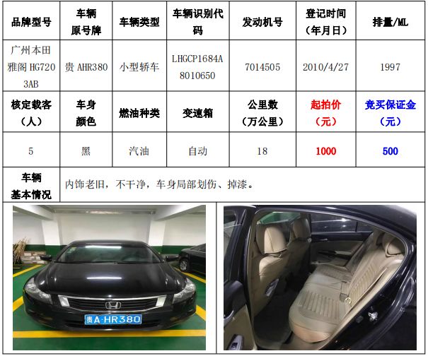 拍品編號(hào)3:廣州本田雅閣HG7203AB小型轎車