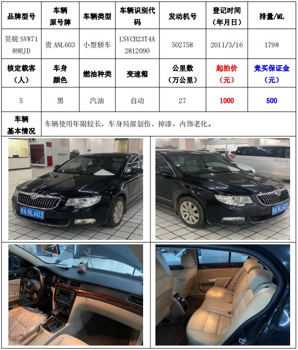 拍品編號(hào)4:昊銳SVW7189BJD小型轎車