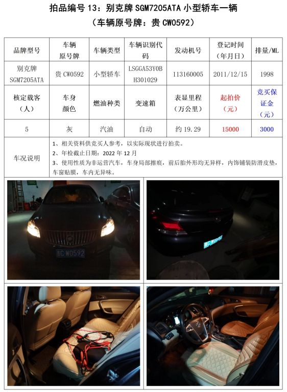 受委托,我公司定于2022年11月22日(星期二)下午14:30在中拍平臺(https://paimai.caa123.org.cn/)及貴州省遵義市匯川區(qū)廈門路13號中國農(nóng)業(yè)銀行遵義分行16樓會議室采用網(wǎng)絡(luò)與現(xiàn)場同步拍賣方式公開拍賣以下標(biāo)的:
