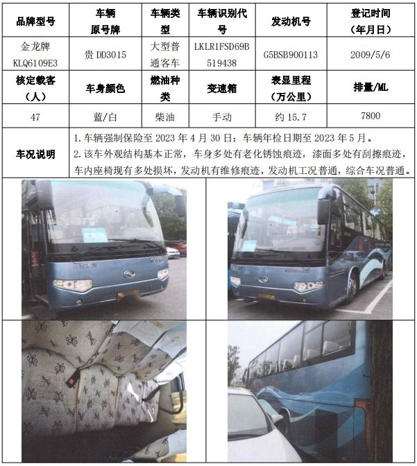 拍品編號19:三菱牌CFA2031H小型越野客車一輛、金龍牌KLQ6109E3大型普通客車一輛、江鈴全順牌JX6466DF-M小型普通客車一輛、東方日產(chǎn)牌DFL6460VFC1小型普通客車一輛