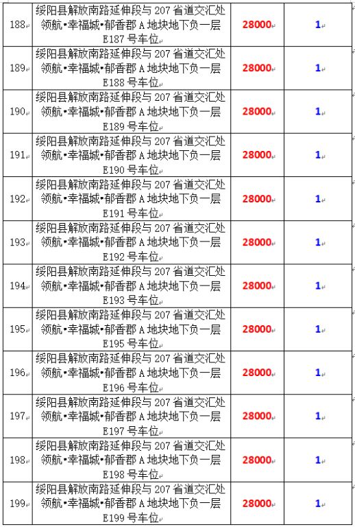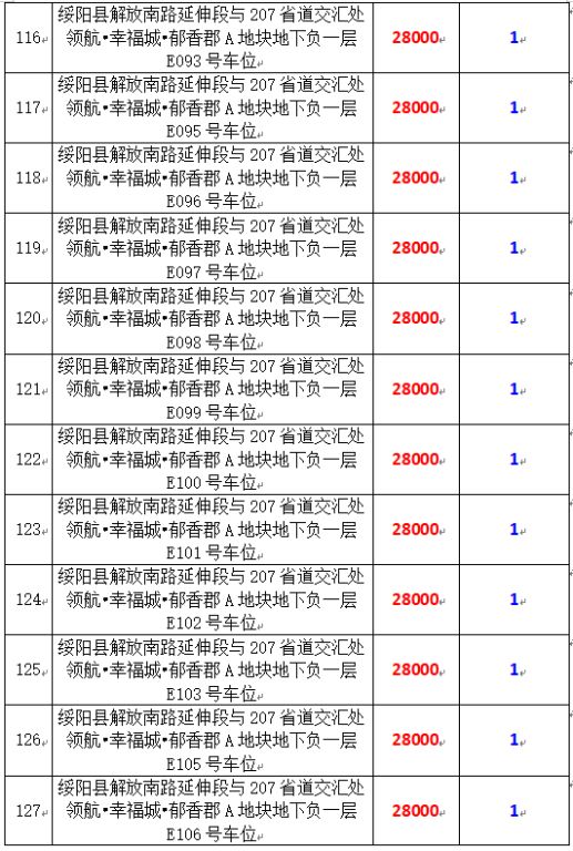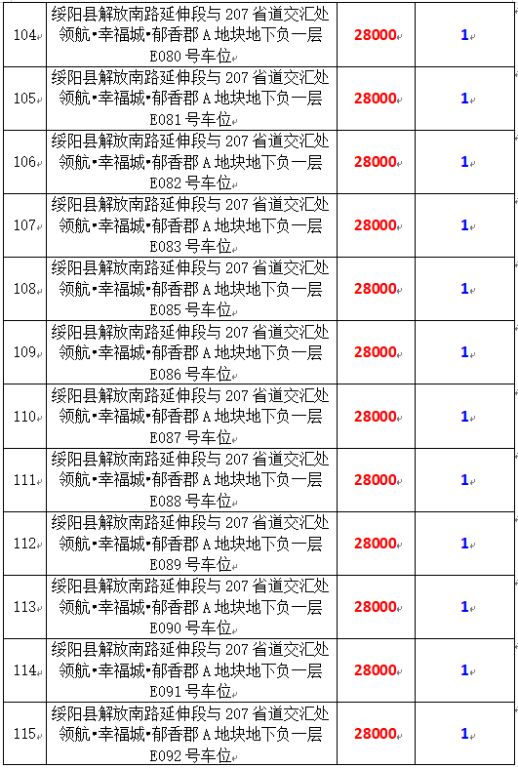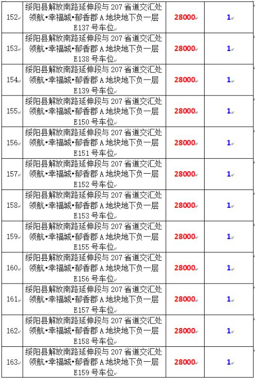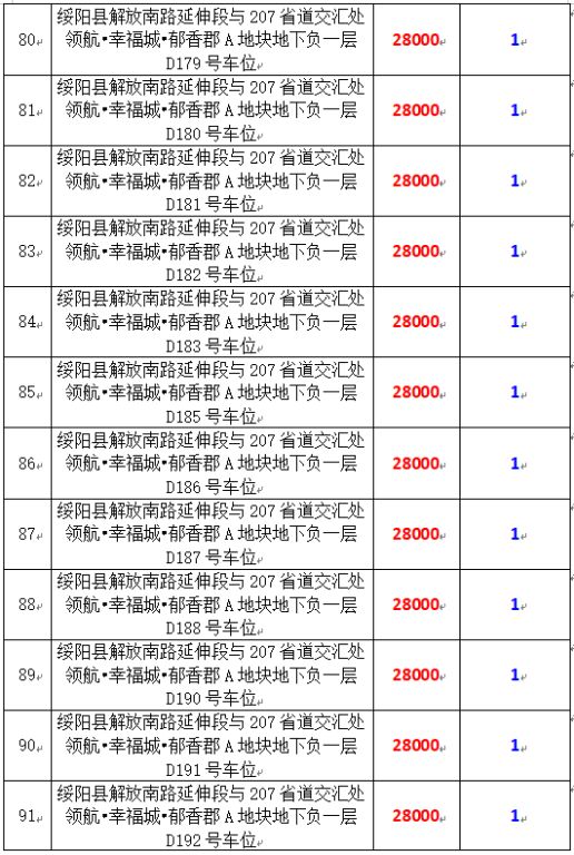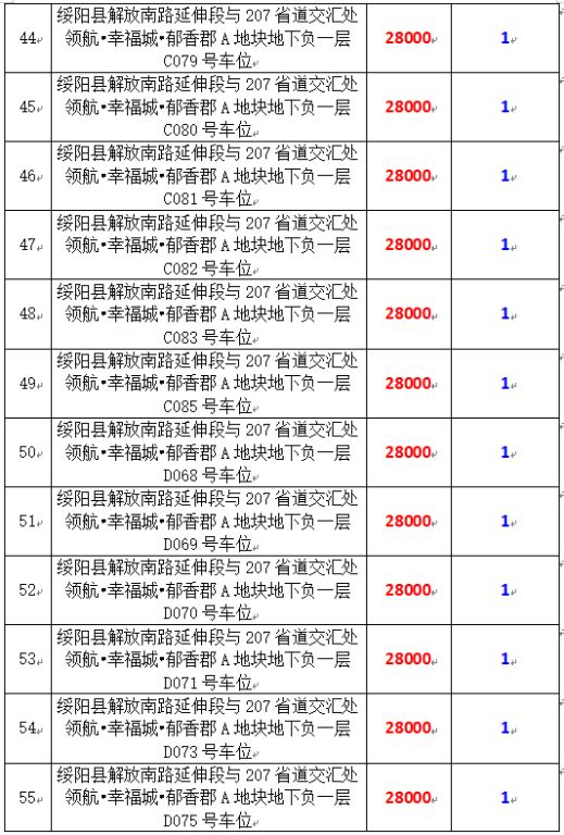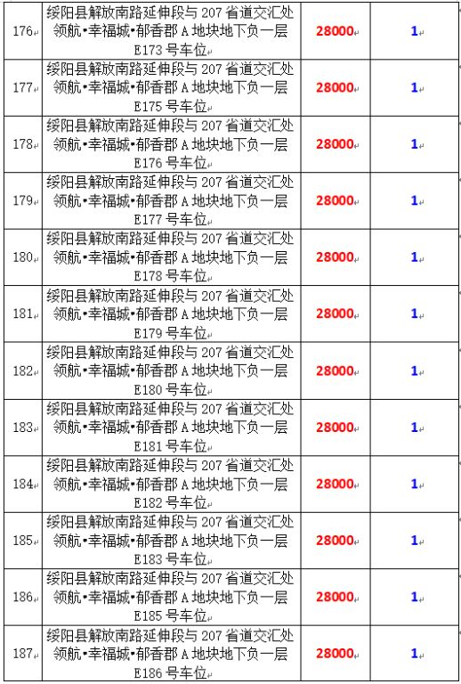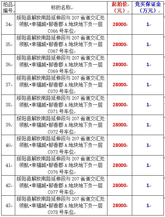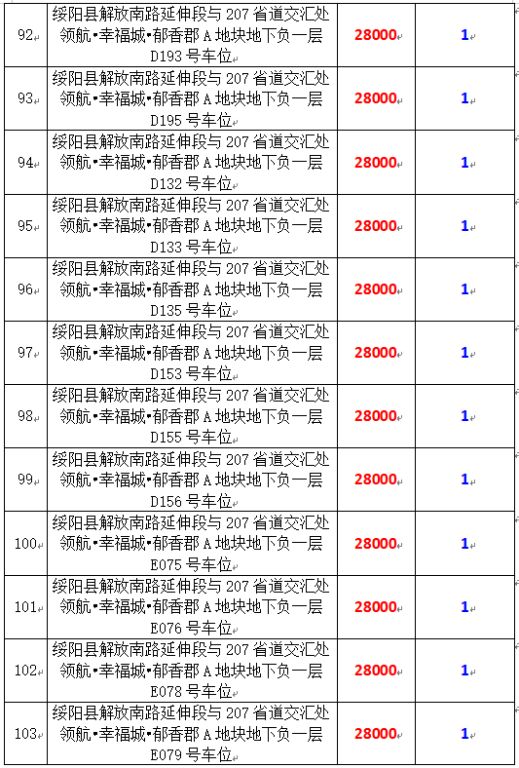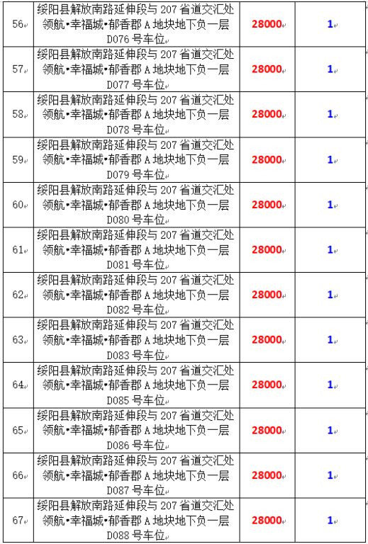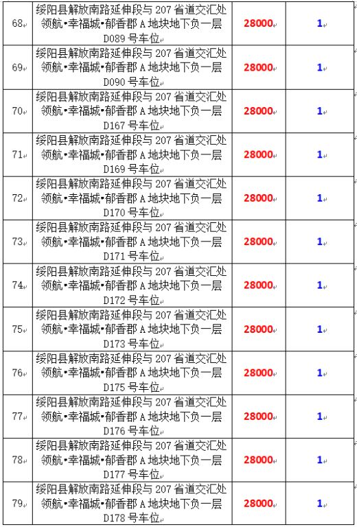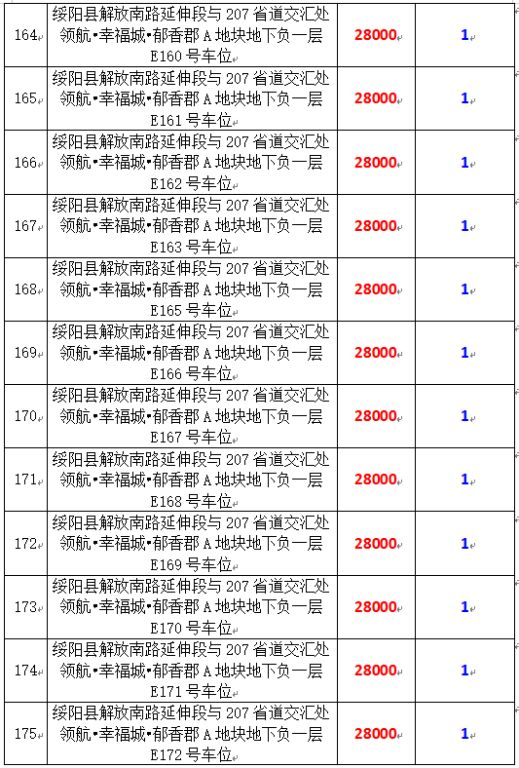 6、綏陽(yáng)縣解放南路延伸段與207省道交匯處領(lǐng)航?幸福城?郁香郡A地塊地下負(fù)一層170個(gè)車(chē)位,起拍價(jià):28000元/個(gè),競(jìng)買(mǎi)保證金:1萬(wàn)元/個(gè)。