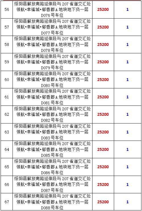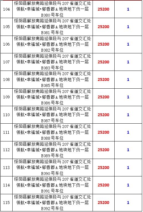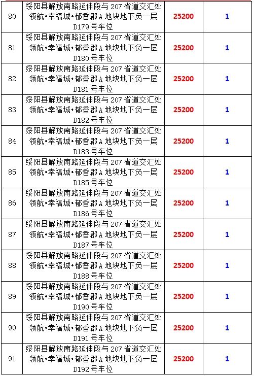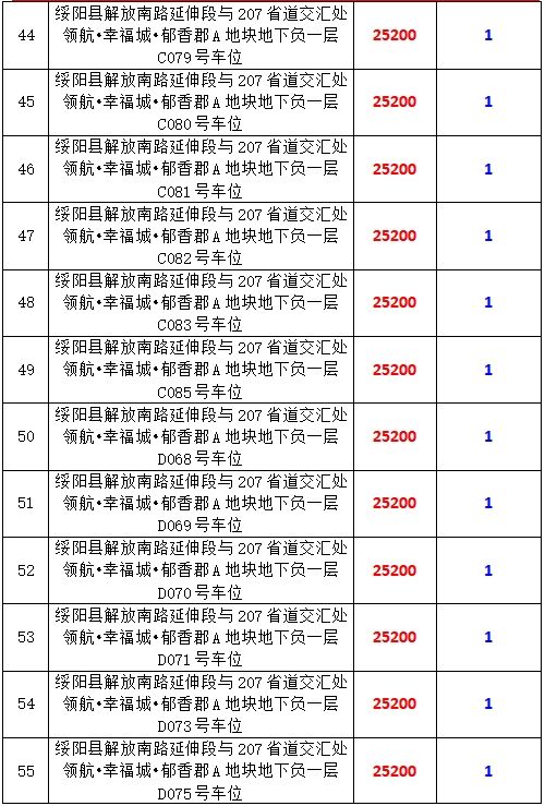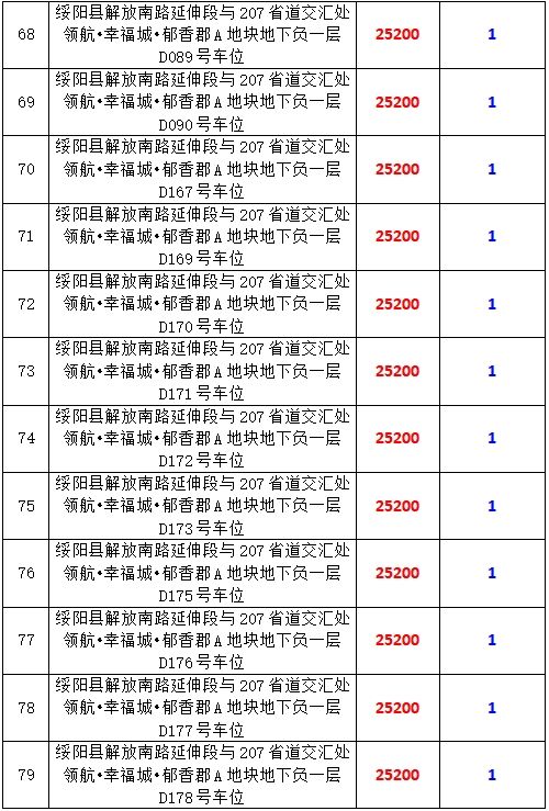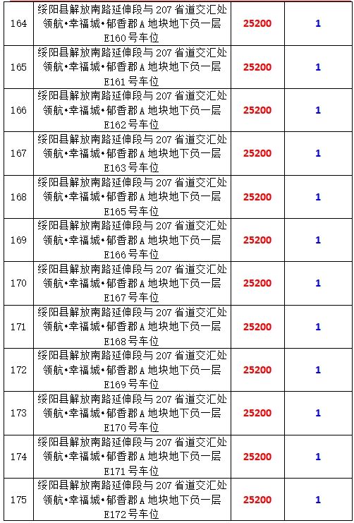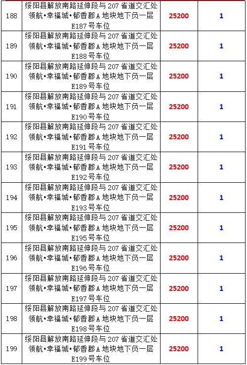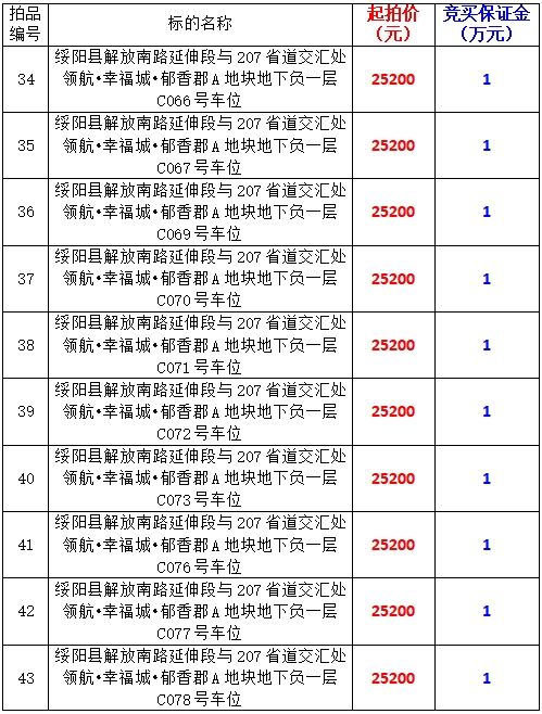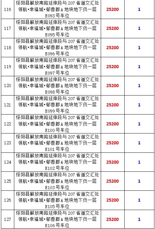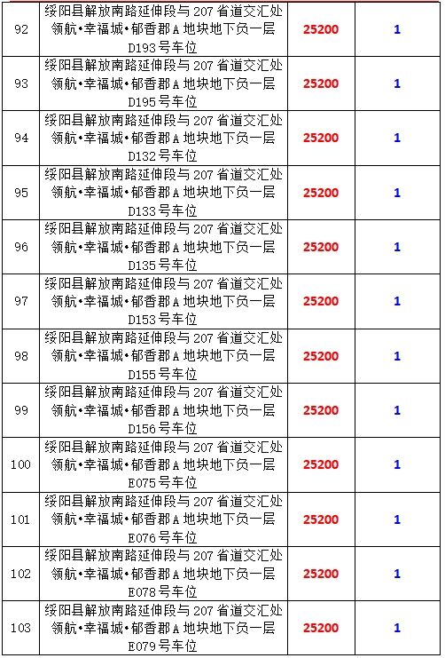 6、綏陽縣解放南路延伸段與207省道交匯處領航?幸福城?郁香郡A地塊地下負一層170個車位,起拍價:25200元/個,競買保證金:1萬元/個