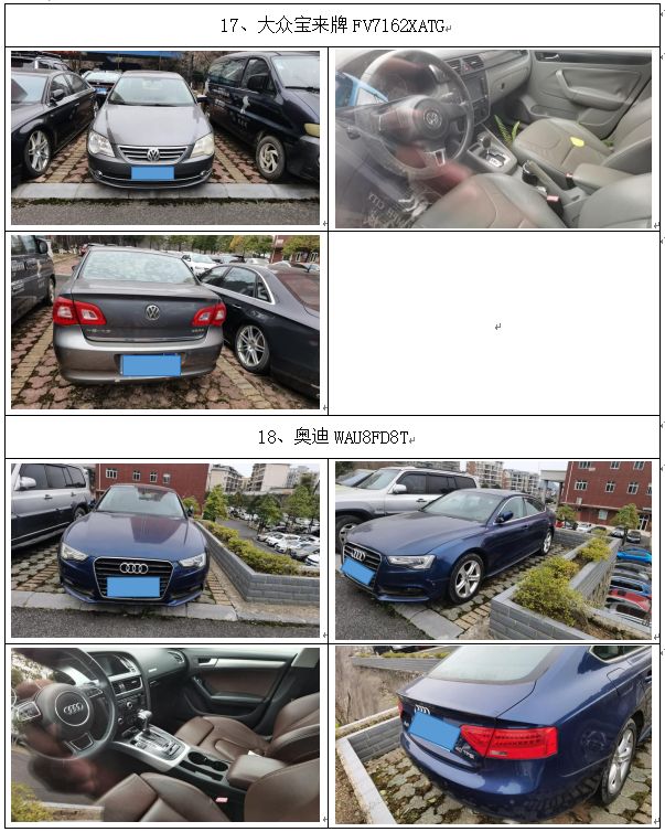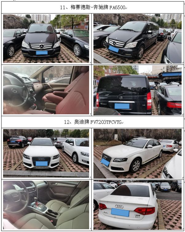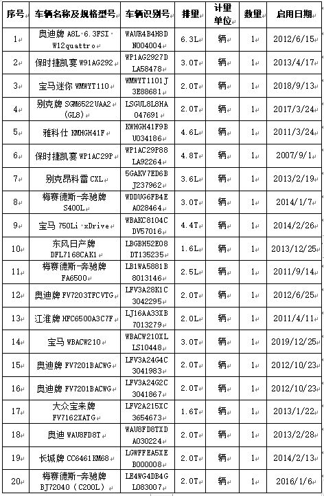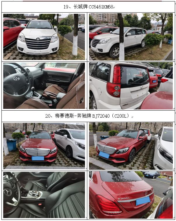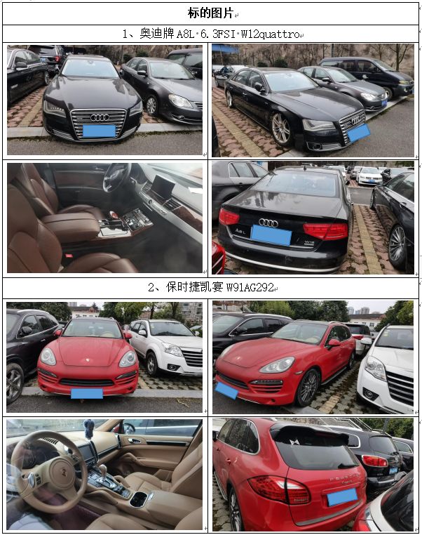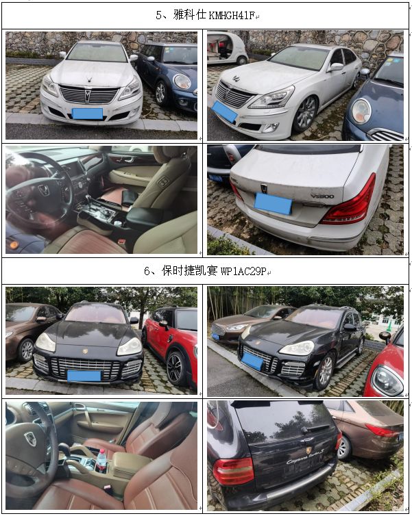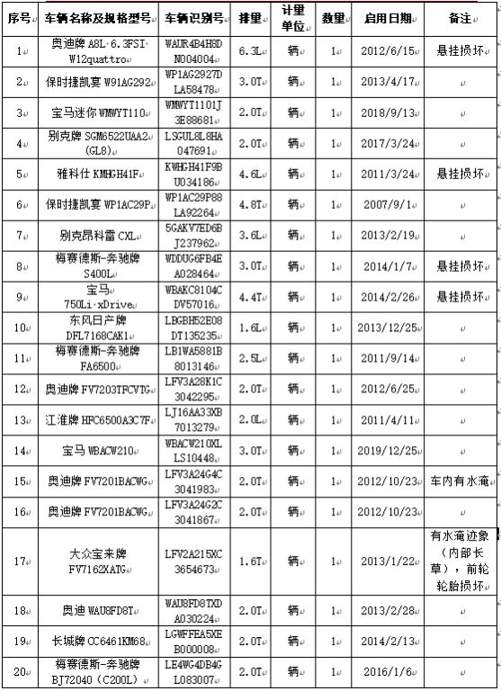 拍品編號1:保時捷凱宴、寶馬、梅賽德斯-奔馳牌、奧迪、別克、雅科仕、東風日產(chǎn)牌、江淮牌、大眾寶來牌、長城牌等車輛,共計20輛(整體拍賣)