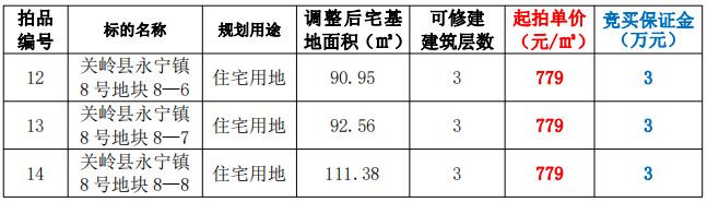 拍品12-14號(hào):關(guān)嶺縣永寧鎮(zhèn)8號(hào)地塊8-6至8-8