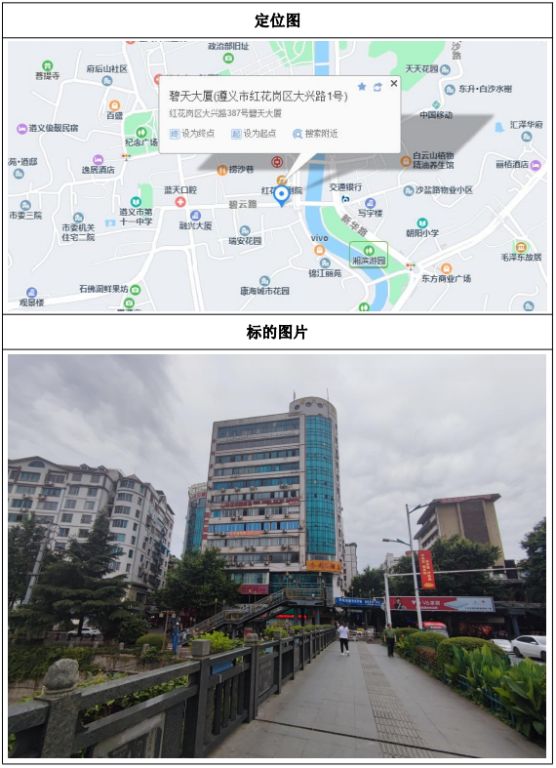 6、遵義市紅花崗區(qū)大興路1號(hào)(碧天大廈)地下室、五層,遵義市紅花崗區(qū)大興路碧興商住樓負(fù)一層,位于遵義市紅花崗區(qū)老城區(qū),兩棟房屋相鄰,中間隔一條小街。周邊有中國(guó)農(nóng)業(yè)銀行、遵義會(huì)議會(huì)址,遵義市第十一中學(xué),遵義市朝陽(yáng)小學(xué),百盛購(gòu)物中心,百貨大樓,鳳凰山公園等,公共服務(wù)設(shè)施較完備。