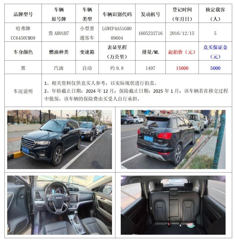 拍品編號2:哈弗牌CC6450UM09小型普通客車一輛