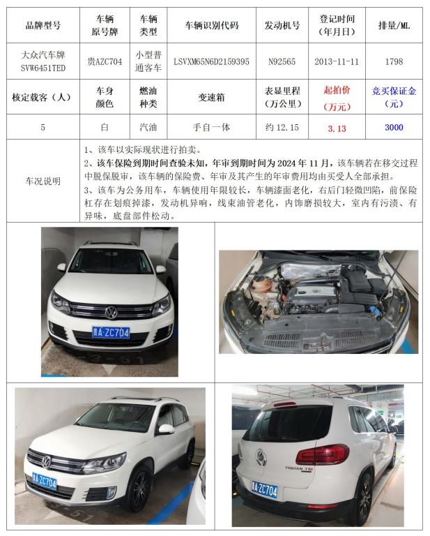 拍品編號1:大眾汽車牌 SVW6451TED小型普通客車1輛