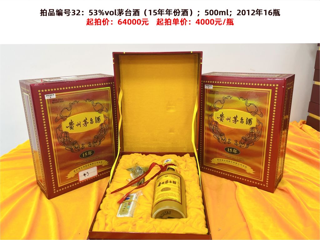 罰沒物品——貴州茅臺(tái)酒約2200瓶(其中有各類茅臺(tái)酒及各類生肖酒、15年、30年、50年年份酒,還有巴拿馬90周年紀(jì)念酒、世博紀(jì)念酒及多款特制紀(jì)念酒),詳見《拍賣標(biāo)的清單》。