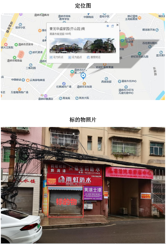 展樣地點:標(biāo)的物所在地