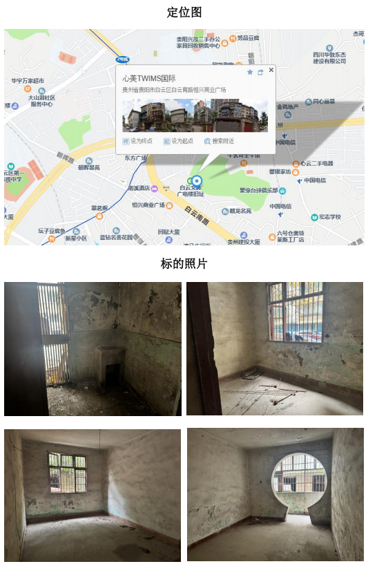 標(biāo)的坐落于白云區(qū)白云南路50號(hào)1單元2層3號(hào),房屋總層數(shù)為4層,拍賣標(biāo)的所在層數(shù)為2層,產(chǎn)權(quán)證編號(hào):黔(2025)白云區(qū)不動(dòng)產(chǎn)權(quán)第0005916號(hào),權(quán)利類型:國(guó)有建設(shè)用地使用權(quán)/房屋所有權(quán),權(quán)利性質(zhì):劃撥/自建房,用途:城鎮(zhèn)住宅用地/成套住宅,建筑面積:54.5㎡,房屋結(jié)構(gòu):混合結(jié)構(gòu)。
