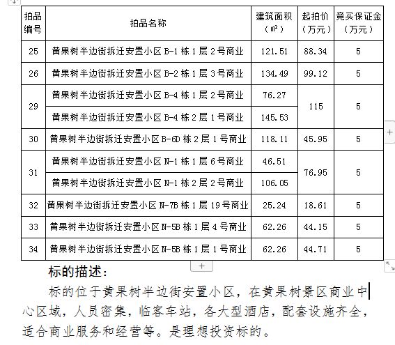 拍品編號:25-34號 黃果樹半邊街拆遷安置小區(qū)商業(yè)用房