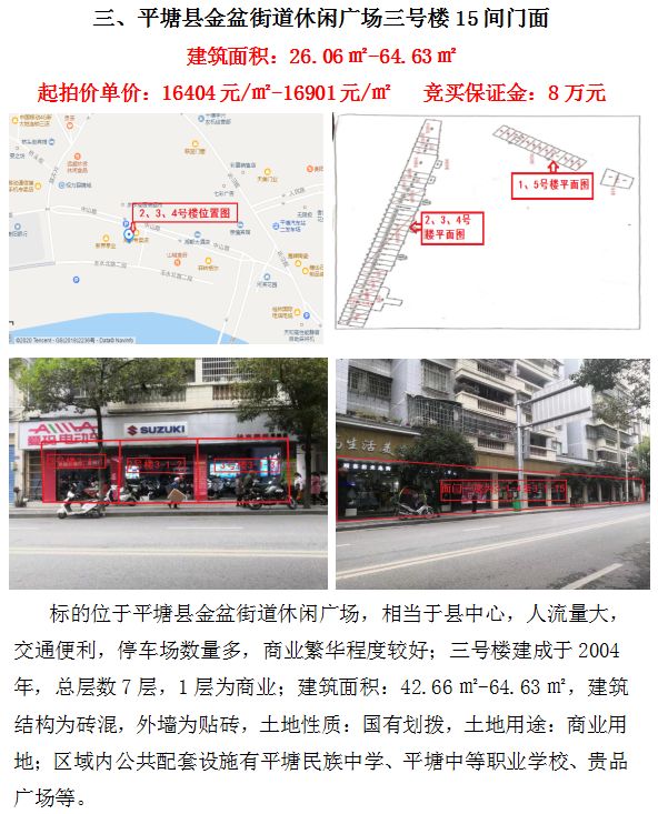 三、平塘縣金盆街道休閑廣場三號樓15間門面(建筑面積:26.06㎡-64.63㎡)