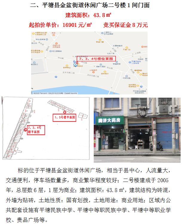 二、平塘縣金盆街道休閑廣場二號樓間1間門面(建筑面積:43.8㎡)