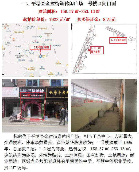 一、平塘縣金盆街道休閑廣場一號樓2間門面(建筑面積:156.37㎡-253.13㎡)