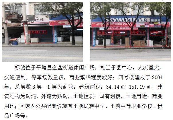 四、平塘縣金盆街道休閑廣場四號樓(競能樓)9間門面(建筑面積:34.14㎡-151.19㎡)